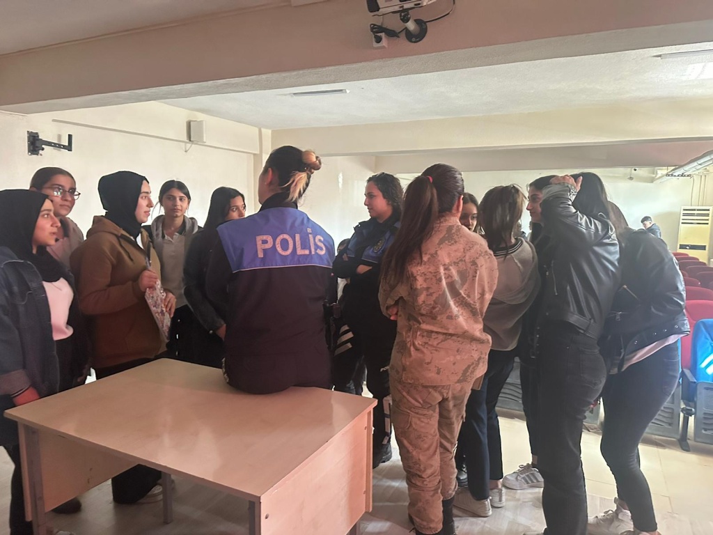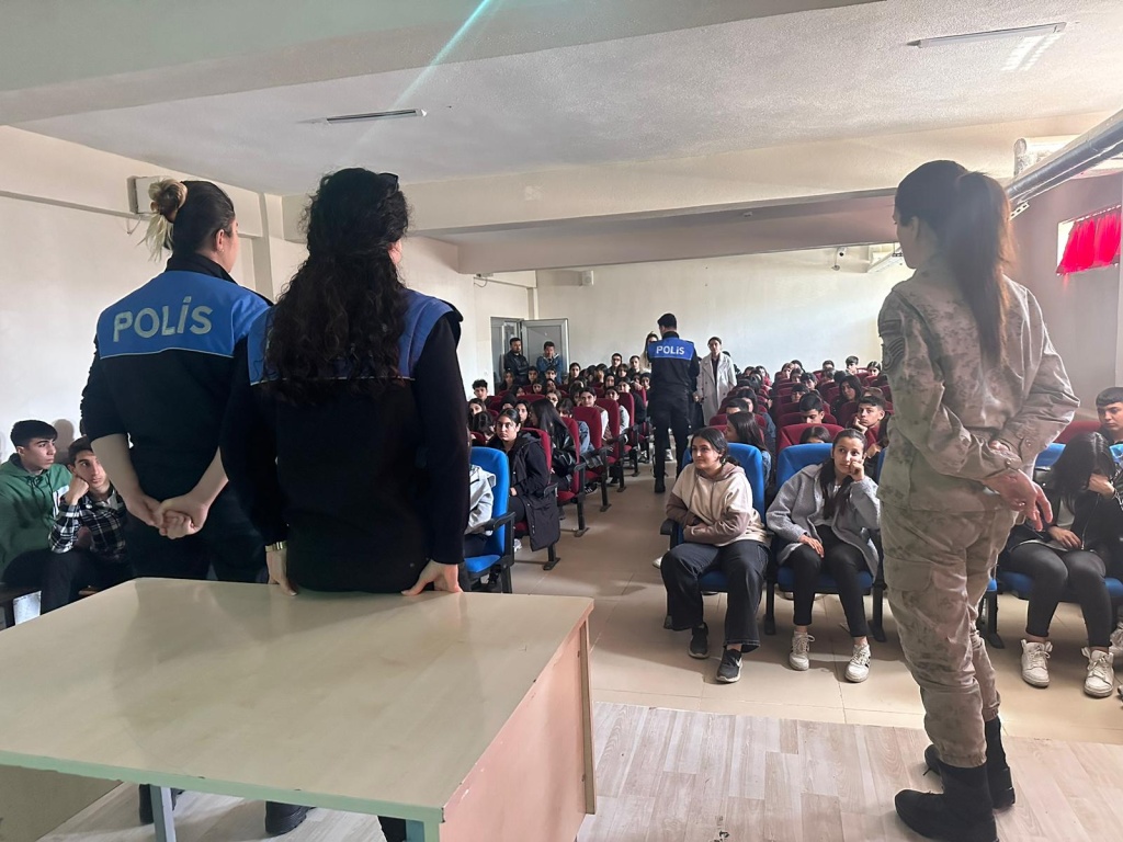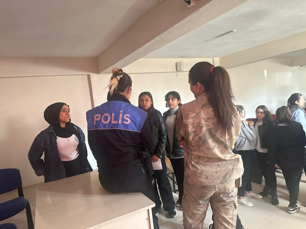 Kariyer planlaması kapsamında 15.03.2024 tarihinde İlçe Jandarma Müdürlüğünden ve İlçe Emniyet Genel Müdürlüğü’nden Uzman Çavuş ve Polis, Okul Psikolojik Danışmanları Bermal YÜRÜK ve Burcu DEMİREL iş birliğiyle okula davet edildi. Mesleğini tanıtıp sorulan soruları cevaplandırdı.